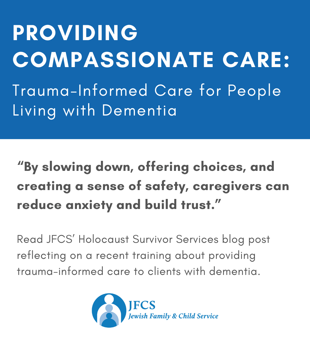 Jewish Family & Child Service (JFCS) provides social services that improve the lives of adults, families, and children in the Jewish and general communities.
